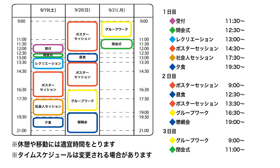 9/4現在のタイムテーブルです.スケジュールは変更される場合がありますので,予めご了承ください.
