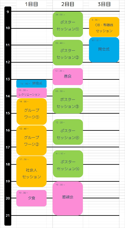 VIP合宿では、ポスターセッションのほか、レクリエーション、懇親会や講演会など参加者の皆さんが交流できる、様々な企画を予定しています。
