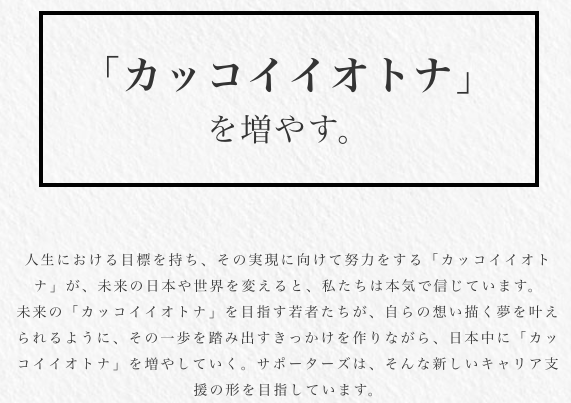 エンジニア職・ビジネス職の新卒採用支援を行っています。また年間100以上のイベント、全国30大学でのキャリアセミナーなど、様々な形でキャリアについて考え、「カッコイイオトナ」の基礎を作る場所を提供しています。
