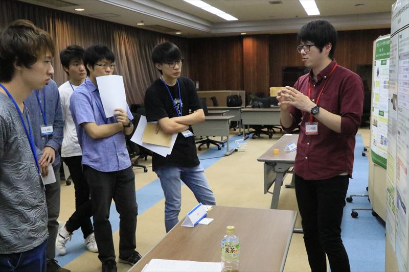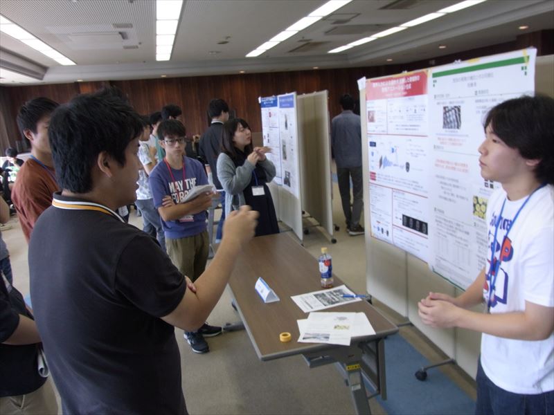 1人あたり40分の持ち時間で、自身の研究をポスター発表形式で発表していただきました。(発表題目一覧)また、各セッション開始時に各人90秒のファストフォアードで研究の概要を説明してもらうことにより、聴講者が気になる研究をあらかじめ把握できるようにしました。
