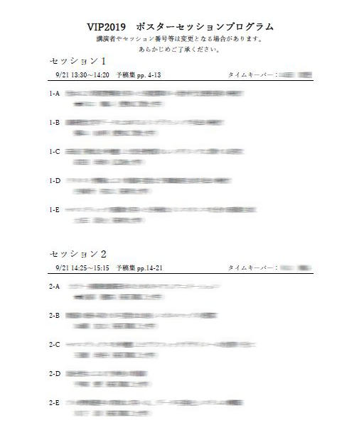 一部セッション番号を変更しました。発表時間に変更はございません。(2019/9/19)